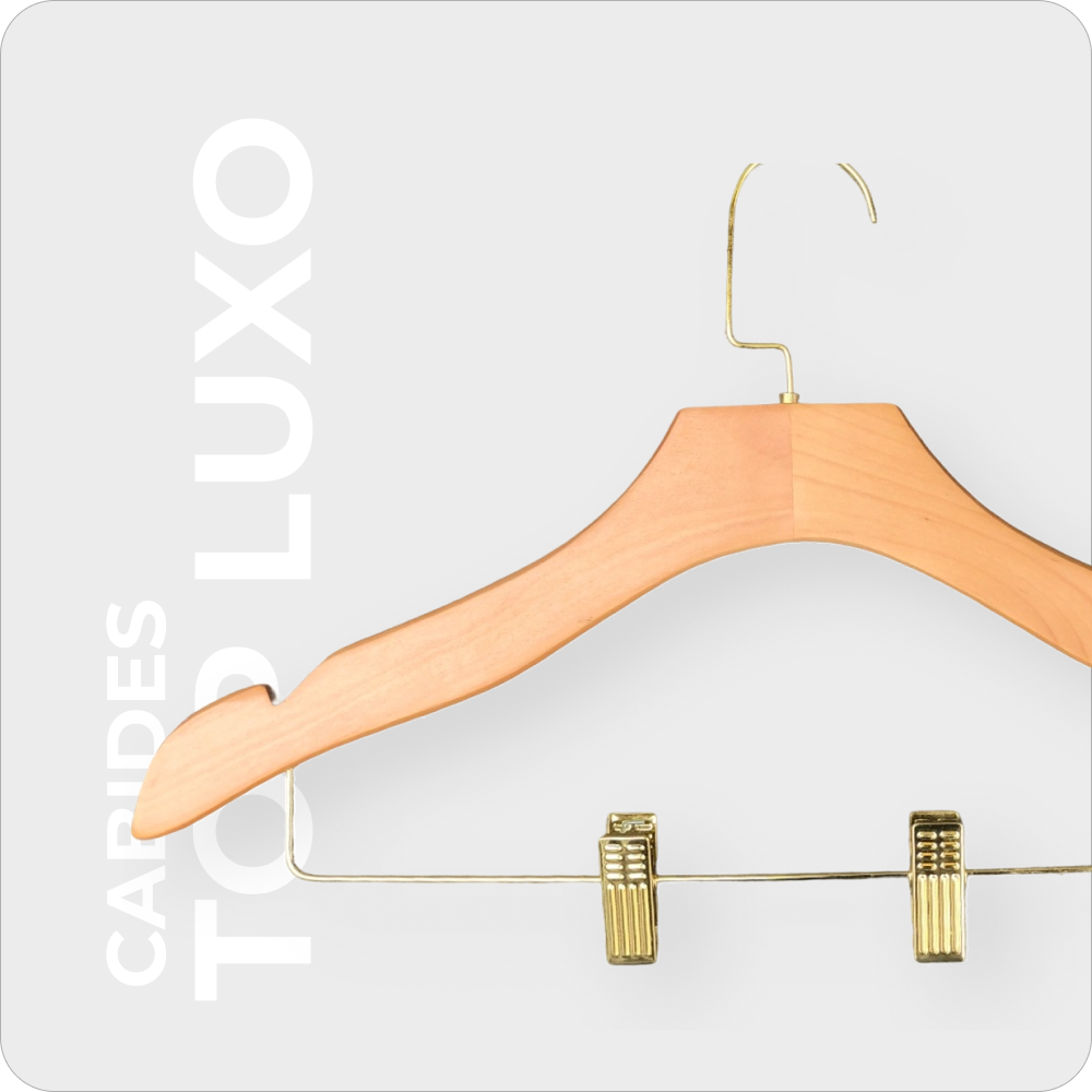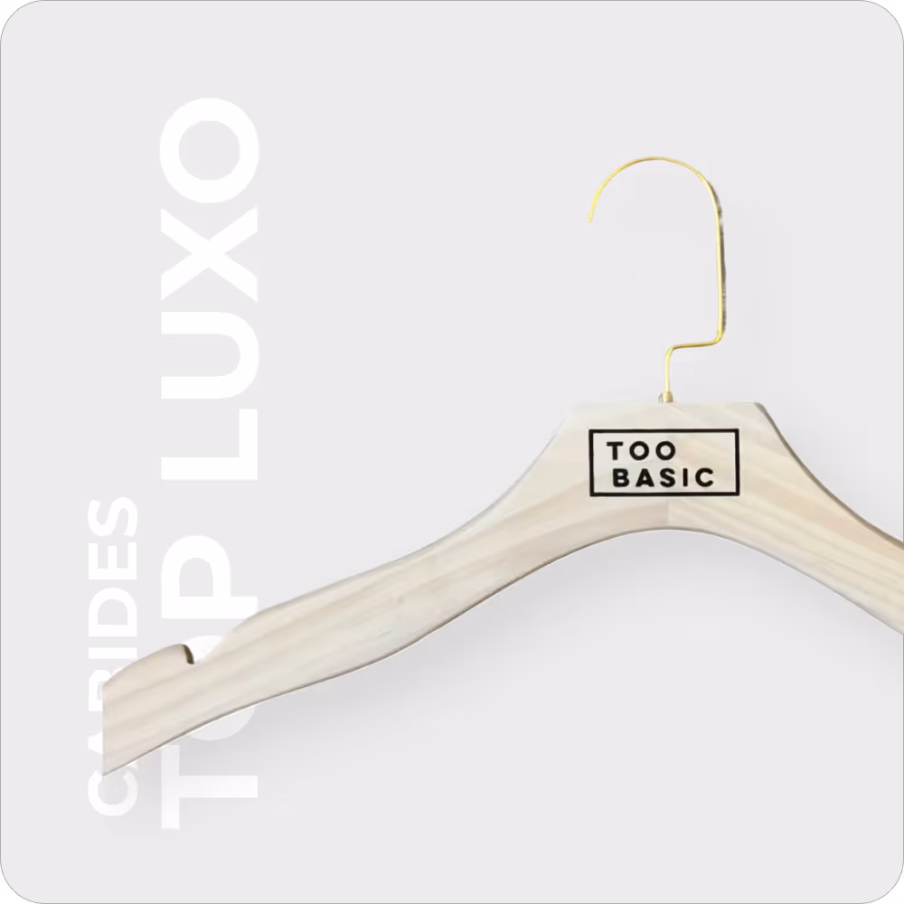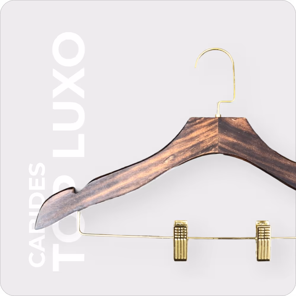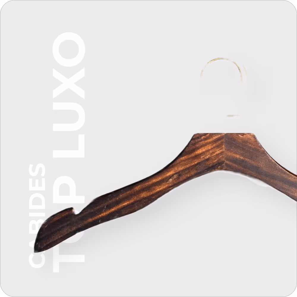 Confie em quem entende o valor de cada peça: produzimos cabides de madeira lisos ou personalizados com um único propósito — destacar a exclusividade da sua marca.