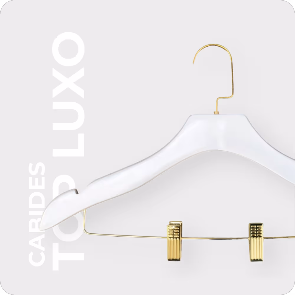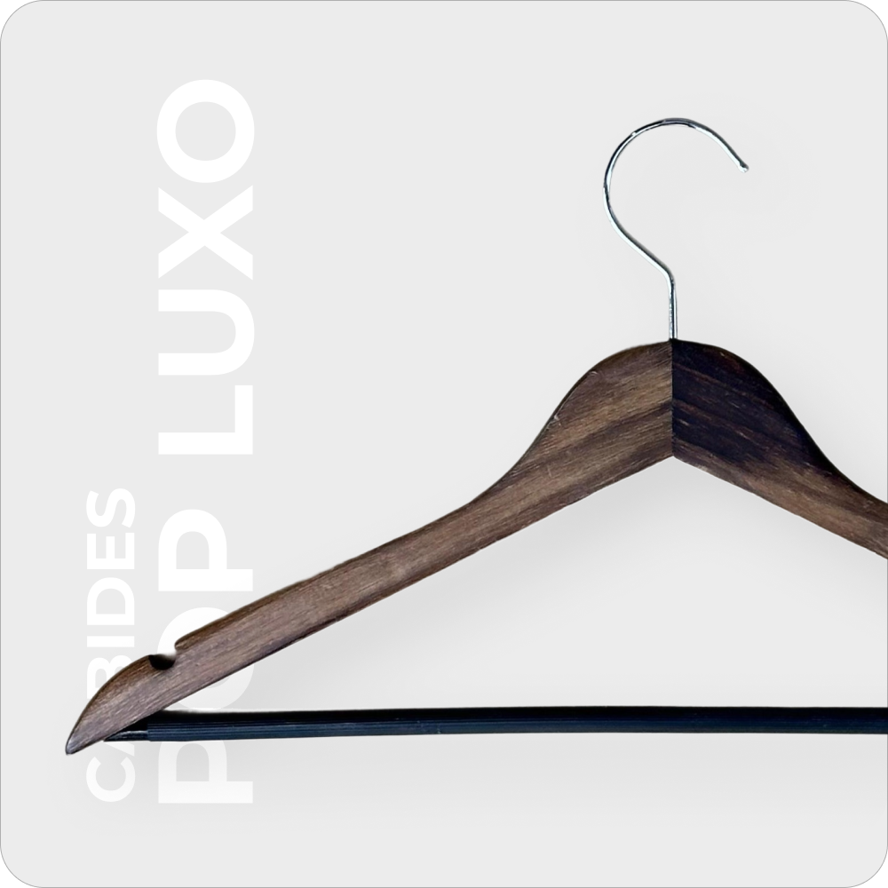 Confie em quem entende o valor de cada peça: produzimos cabides de madeira lisos ou personalizados com um único propósito — destacar a exclusividade da sua marca.
